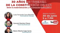 PRESENTACIÓN Con ocasión del aniversario 30 de la Constitución de 1991 se plantea un escenario de discusión y debate para evaluar los logros, alcances y carencias en su implementación. JUSTIFICACIÓN Es un hito histórico la Constitución de 1991 y es deber de nuestra Institución hacer, tanto un homenaje como un alto en el camino para evaluar críticamente su eficacia. OBJETIVO Generar espacios extracurriculares que permitan a la comunidad académica tener herramienta